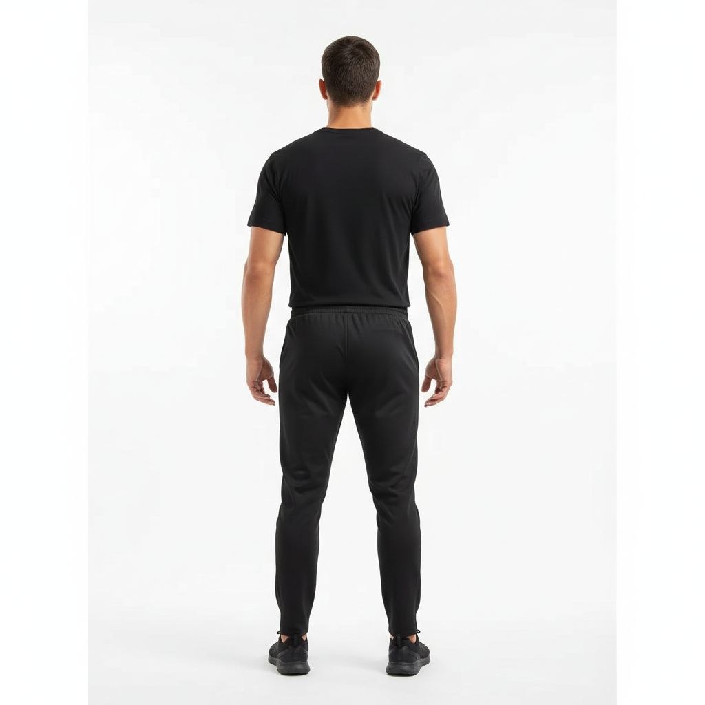 Pantaloni basic neri da ragazzo realizzati in cotone o misto cotone con leggero elasticizzato per una maggiore libertà di movimento. Vita media con tasche pratiche e orlo semplice, progettati per garantire resistenza e facilità di cura, ideali per outfit casual e smart-casual.